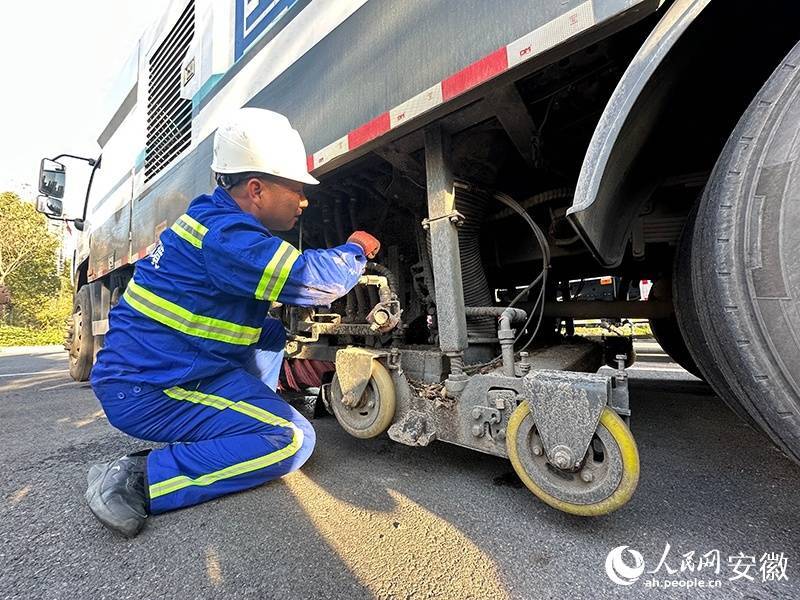 2024年9月,台风“梅花”过境前夜,一台洗扫车液压管突发渗漏,他裹着雨衣蜷缩在车底进行抢修,全然不顾手刚刚被尖锐金属划开一道伤口,咬牙奋战两小时,完成了设备的抢修。